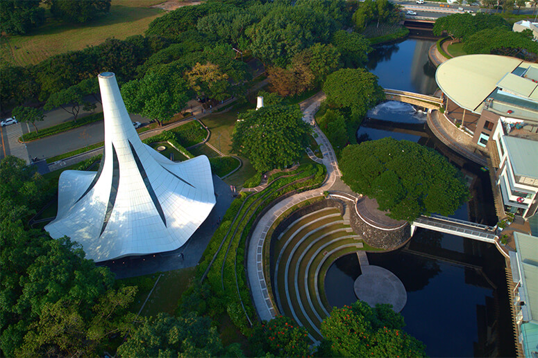 The river’s final stop within Filinvest City is the Water Garden beside Festival Mall—a space intentionally designed to act as a catch basin during heavy rains. The garden temporarily holds rainwater, releasing it gradually as levels subside. Its adaptive landscape means that water pooling in the area is not a flaw but part of its purpose. As levels rise, the Water Garden transforms into a visual display of how art, engineering, and ecology can work together, with sculptures and plantings designed to respond gracefully to changing conditions.