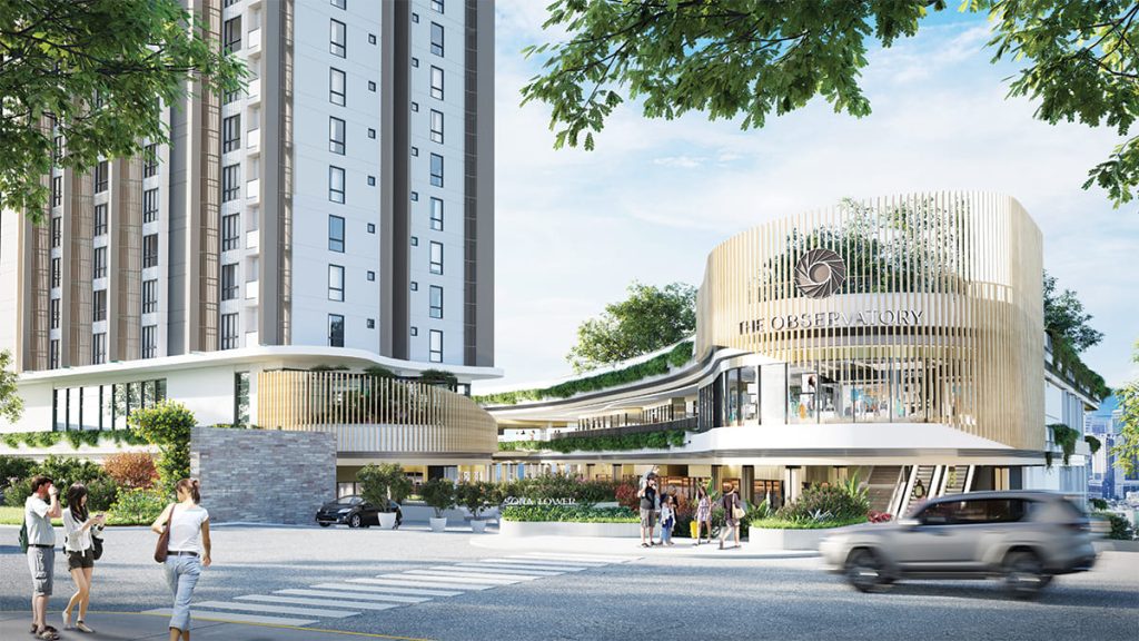 The Observatory will be a center of everyday convenience, bringing together a retail podium, open spaces, and modern residential comforts in one seamlessly connected destination. (Artist’s perspective)