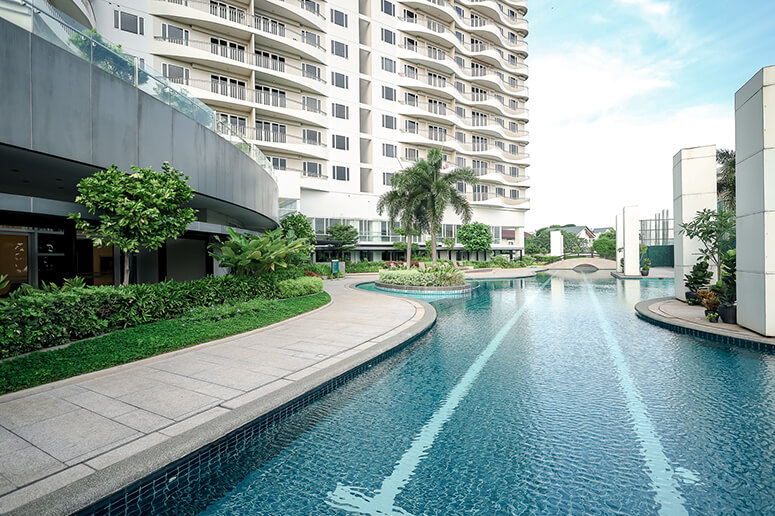 Beyond aesthetics, the project’s design prioritizes comfort and transition. The main lobby is elevated to the second level, creating a deliberate separation from street activity and introducing residents to landscaped courtyards that soften the urban experience. Amenities—including a 50-meter lap pool, fitness center, function rooms, library, and outdoor play areas—are arranged to encourage both movement and pause, supporting everyday well-being within a secure environment.