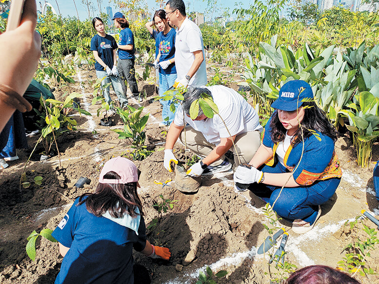 Company executives and VIPs joined students from the Multiple Intelligence International School (MIIS), whose new campus will rise in Parklinks, in planting the first tree saplings.